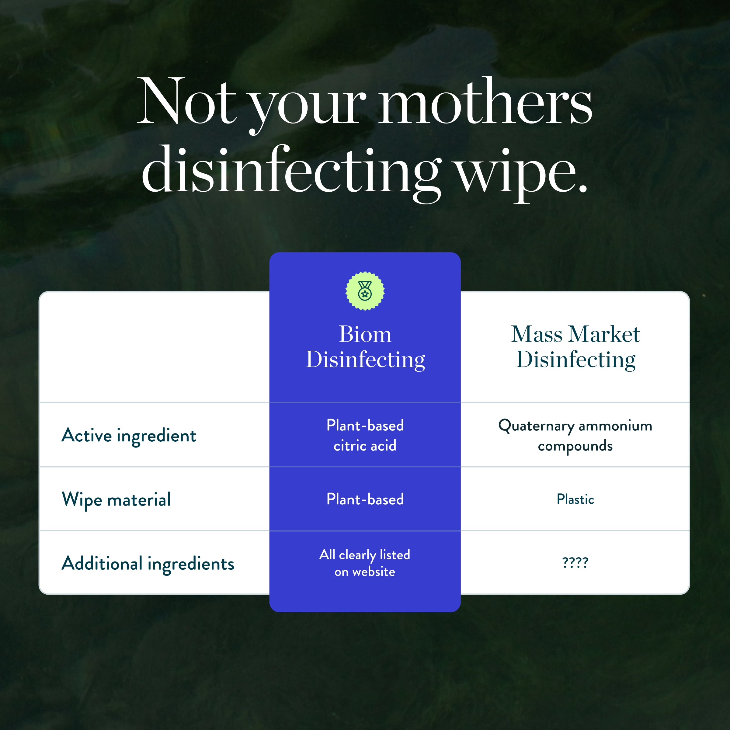 From a 30-second kill time to microplastic-free materials, see how Biom outperforms