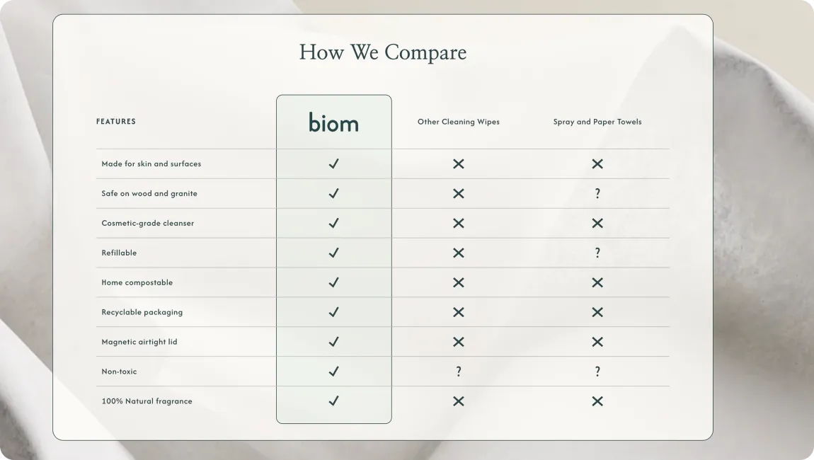 “I was so nervous using my old wipes around kids because the ingredients always sounded so sketchy. Biom wipes are clean and safe!”