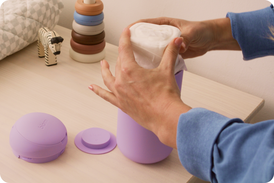 Drop in a Biom Baby refill and close the magnetic lid.